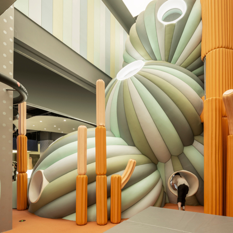Saguaro: módulos verticales acolchados que funcionan como mobiliario, señalética, luminarias o puntos de escalada, adaptándose a distintas edades y niveles de actividad.