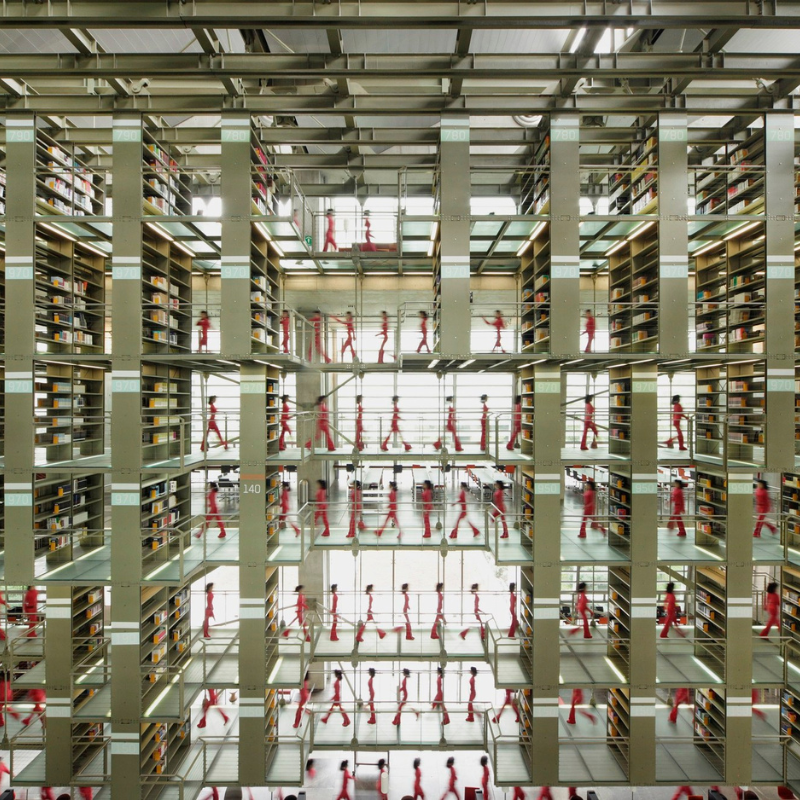 Con una estructura de 250 metros de largo, compuesta por acero, hormigón y vidrio, el edificio se abre al entorno a través de extensas áreas verdes, cuerpos de agua y una estrategia de diseño que privilegia la ventilación e iluminación natural. El diseño arquitectónico no solo responde al programa funcional, sino que lo trasciende: plantea una reorganización simbólica del conocimiento humano en diálogo con el medioambiente.