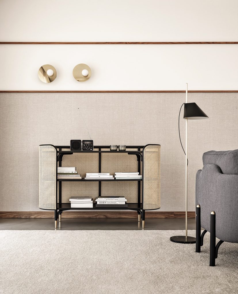 La fina transparencia del dibujo de panal de abeja confiere al mueble una impresión inmediata de ligereza y gracia, y la combinación de madera y mimbre es un contraste especialmente popular. Además, gracias a la palma de ratán, que se renueva rápidamente, el mimbre se considera una opción extremadamente sostenible en el diseño de muebles.