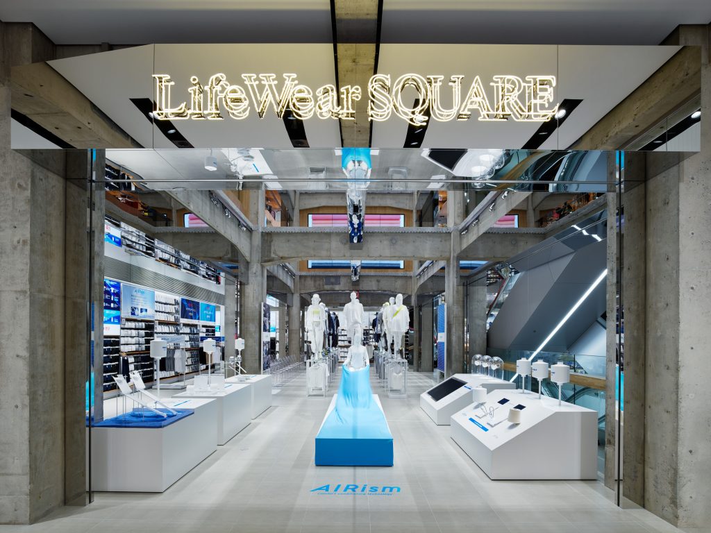 La intervención arquitectónica redefine el espacio comercial como una galería dinámica. Las vitrinas y pantallas se integran en la estructura, generando áreas flexibles para exhibiciones de arte y productos. En el exterior, cubos rojos característicos de UNIQLO marcan las entradas y actúan como puntos de interacción pública, invitando a artistas y diseñadores a transformar el espacio en un centro cultural y comercial vibrante.