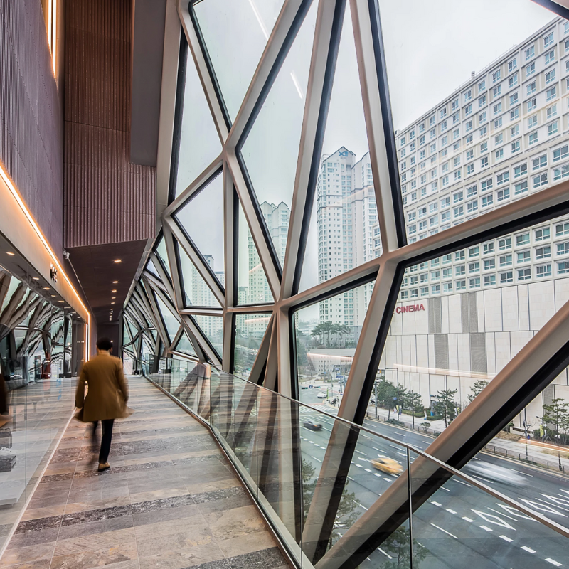 Con esta dualidad —piedra y vidrio, opacidad y transparencia, naturaleza y ciudad— The Galleria en Gwanggyo se ha consolidado como un símbolo arquitectónico que va más allá de lo comercial: un lugar de encuentro donde el consumo, la cultura y la vida pública se entrelazan en un solo gesto arquitectónico.